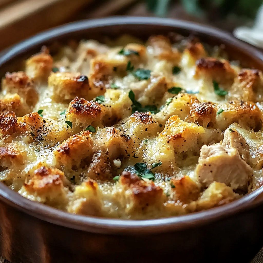 This dish has everything you’d want in comfort food: a rich and creamy base, juicy chicken pieces, and a savory bread stuffing layer that brings it all together. Plus, it’s flexible. You can use leftover chicken, swap in turkey after the holidays, or even load it with vegetables for a heartier twist.